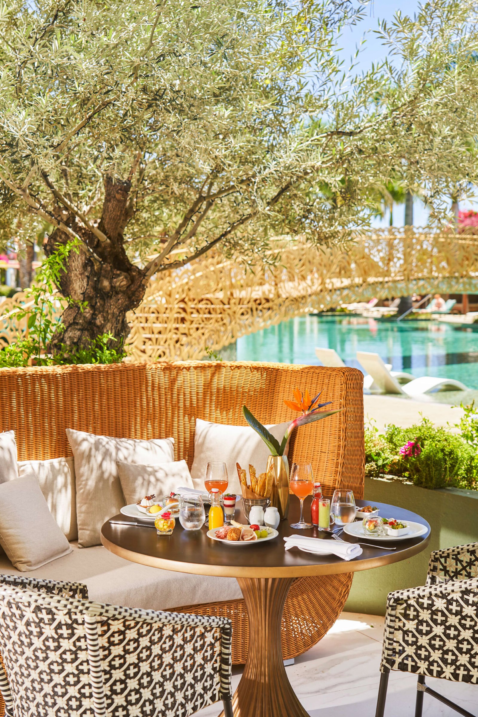 - Ausblick: Gäste genießen während des Frühstücks eine herrliche Kulisse und können über die Poollandschaft schauen.